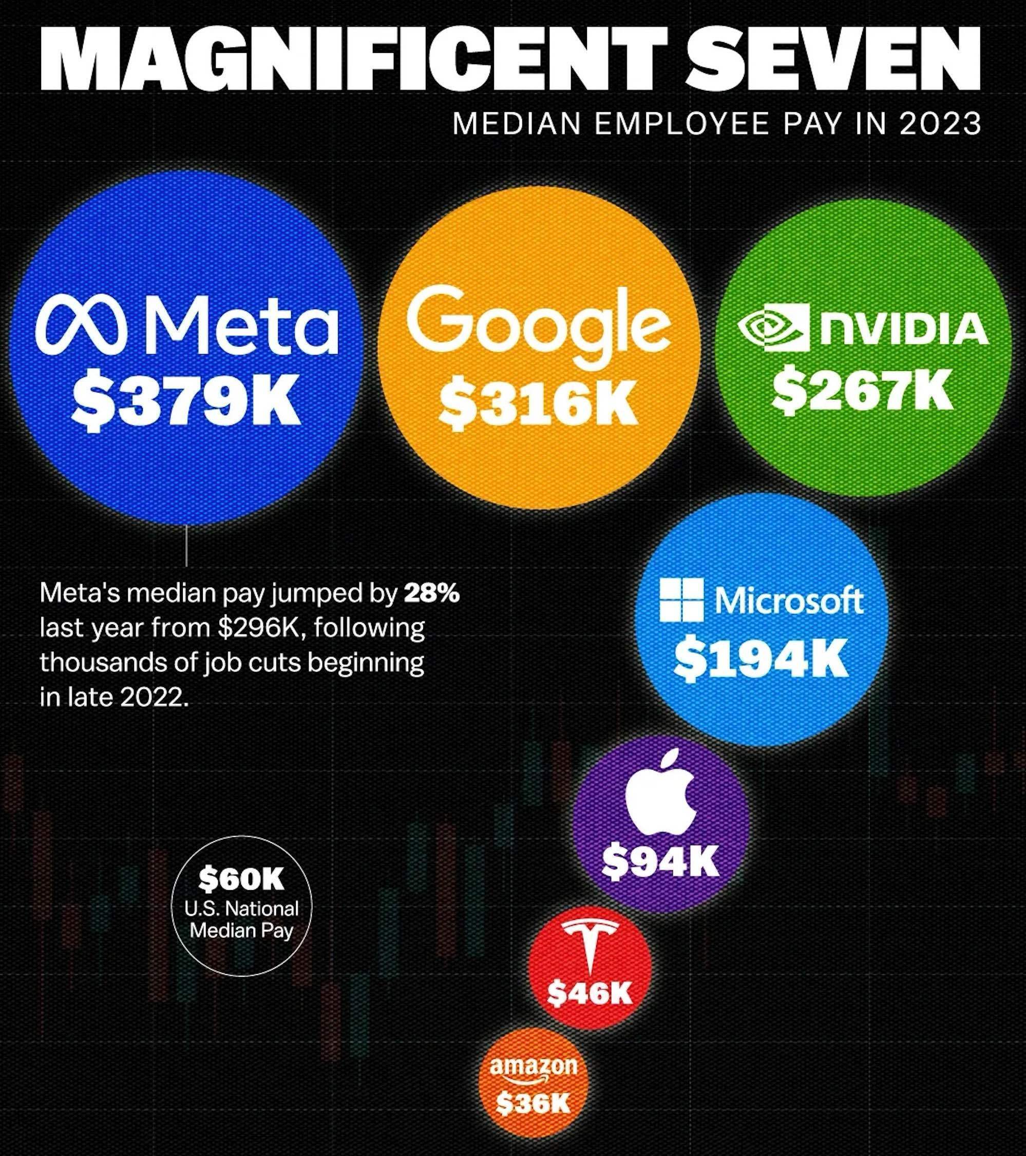 特斯拉并不是首个通过股票奖励提升基本薪酬的公司。Meta、谷歌和亚马逊等公司也以提供丰厚的股票奖励著称。根据Levels.fyi的2024年员工调查数据,特斯拉美国软件工程师的总薪酬(基本薪资中位数加股票奖励),略低于Meta、亚马逊、苹果、Netflix和Alphabet的美国软件工程师。