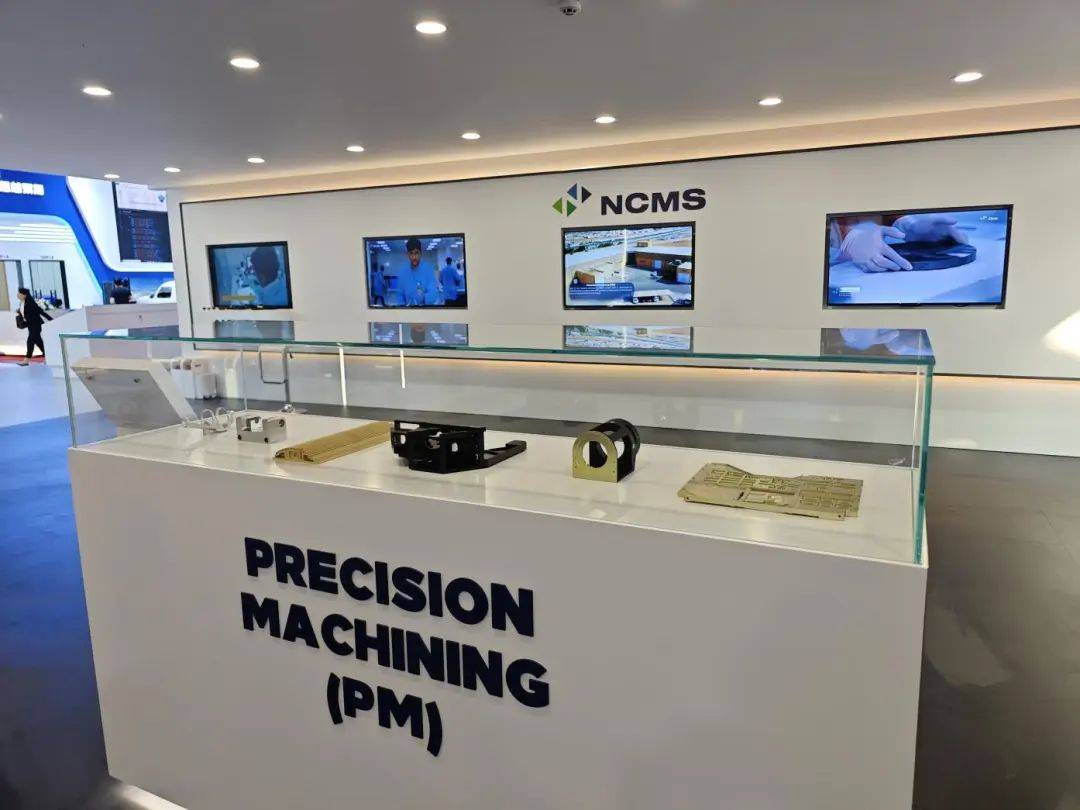 中国航空工业集团和中国兵器的展区内展出的针对柔性连接器类产品数字化装配生产线、发射药的数智工厂。