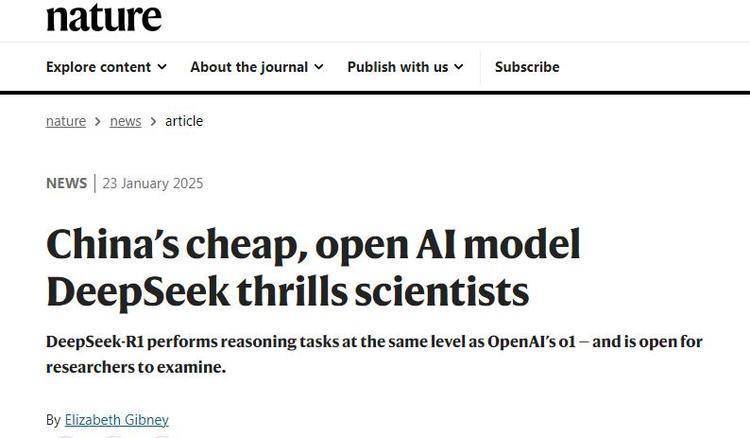 国际在线专稿:近日,中国人工智能(AI)企业DeepSeek发布R1模型,该模型各方面表现亮眼,迅速引起国际社会广泛关注与讨论。多家海外媒体发文高度评价DeepSeek-R1模型性能,并对中国国产AI大模型坚持开源的开放共享精神表示赞赏,称其“为全球科研工作者们提供了前所未有的机遇”。