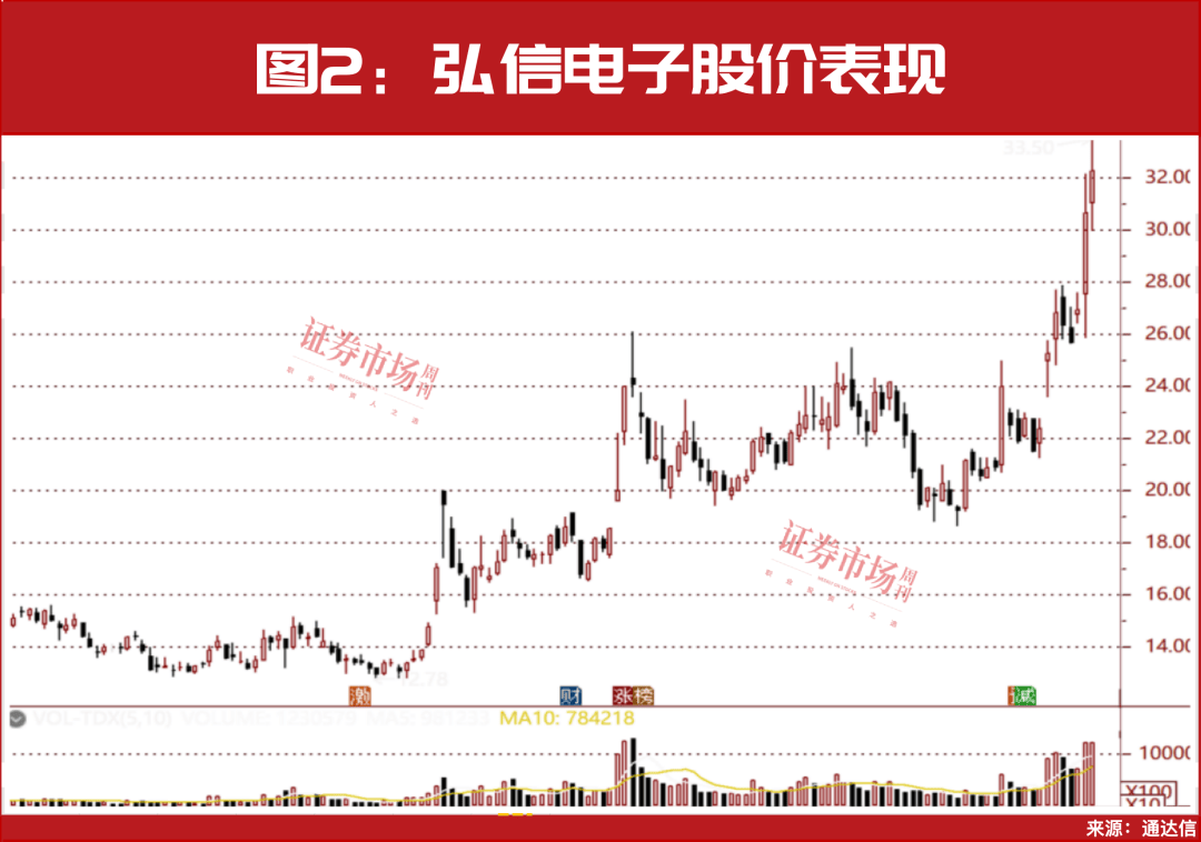 弘信电子同时具有AI眼镜、英伟达、PCB等概念,受AI行情的整体升温,公司股价在近期迎来了一轮加速上涨,1月中旬以来已经累计上涨超60%,且创出自2017年5月上市以来的历史新高(见图2)。