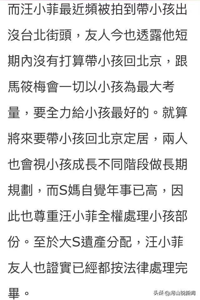 汪小菲友人确认大S遗产和抚养权已解决,S妈疑有不满却无力回天