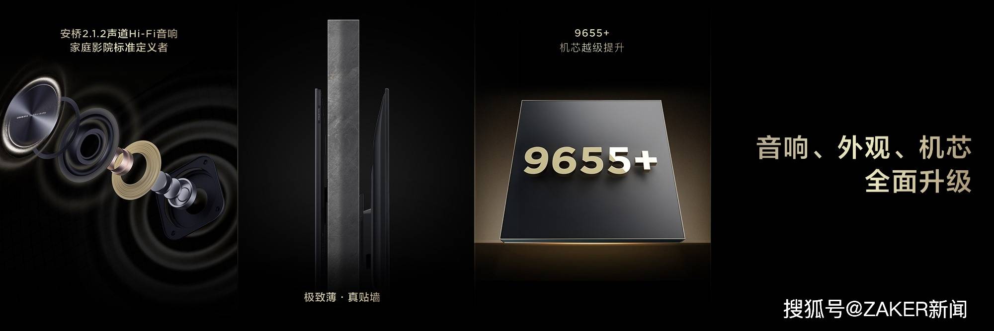 超强的产品力不止于此,TCL Q9L Pro系列还在音响、外观和主机芯上实现跨越式的硬件实力提升。安桥品牌的2.1.2 Hi-Fi音响,拥有5声道专业配置,实现物理环绕效果,并配置2个独立天空声道,更是让声音层次更加丰富,形成360°全方位3D立体环绕的声场效果,让用户感受飞机呼啸掠过头顶的真实震撼。外观则由原来的超薄一体化升级为“极致薄”,好看更好用。主机芯从9653升级为9655 PLUS,不仅性能翻倍,且接口更加丰富。