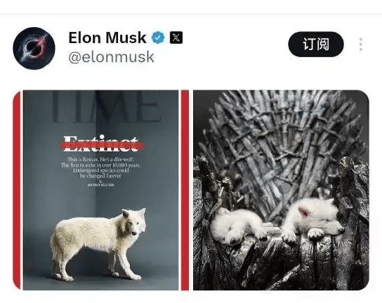 《权力的游戏》中的冰原狼被这家公司复活,马斯克发帖关注