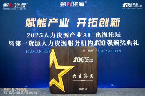 4月18日,人力资源知名媒体 “第一资源”发布了“2025第一资源人力资源服务机构100强”,云生集团排名第8位,连续三年入选该榜单的TOP 10。